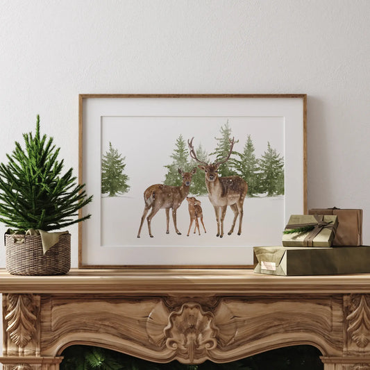 Watercolor Family Deer in a Winter Wonderland - DIGITAL DOWNLOAD | winter22_31