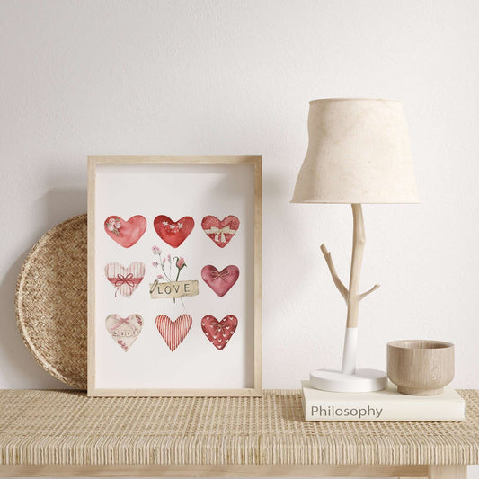 Watercolor Vintage Valentine Hearts Art Print - DIGITAL DOWNLOAD