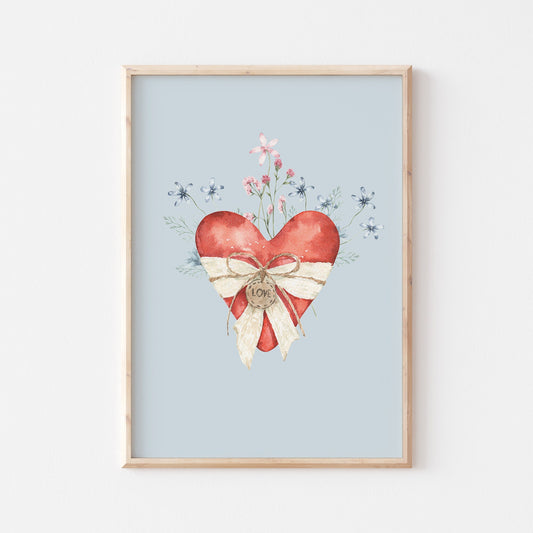 Watercolor Heart and Wildflowers Art Print - DIGITAL DOWNLOAD