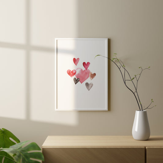 Watercolor Hearts Print Valentines Printable Art, DIGITAL DOWNLOAD