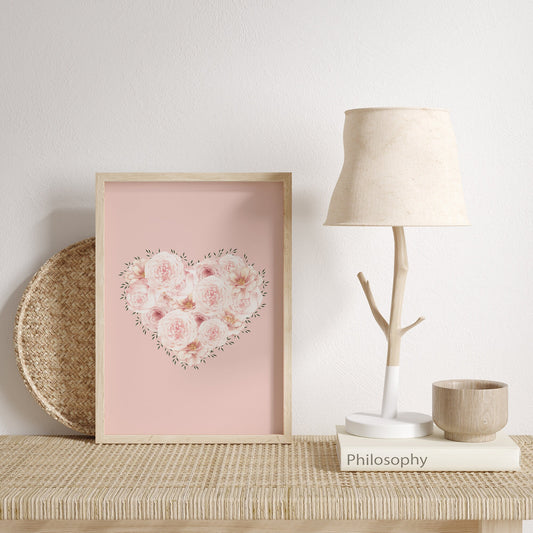 Watercolor Roses Valentine Heart Printable, DIGITAL DOWNLOAD