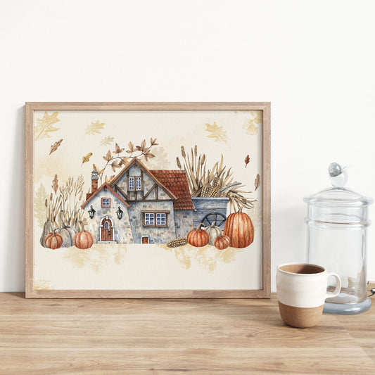 Pumpkin farmhouse Art Print - Autumn DIGITAL DOWNLOAD - FALL22POR09