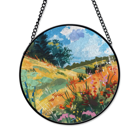 Autumn Golden Path Printed Glass Art | Window Hanging