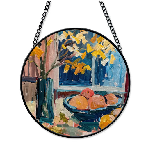 Autumn Pumpkins Printed Glass Art | Window Hanging
