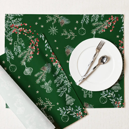 Green Pine and Berry Winter Botanical Placemats | WINTER24PLT03