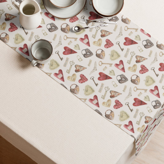 Watercolor Vintage Locks and Keys Hearts Valentine TABLE RUNNER