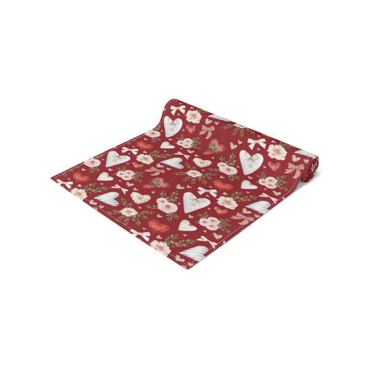 Watercolor Red Hearts Valentine TABLE RUNNER