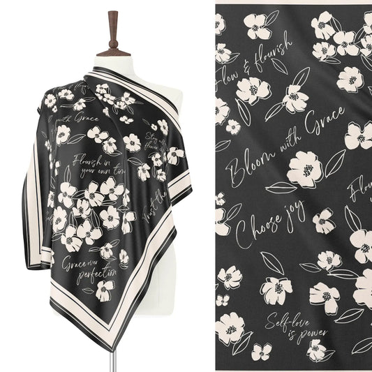 Minimal Wildflowers & Daily Affirmation - Silk SCARF - Black color