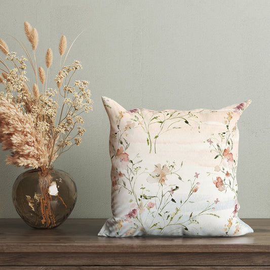 Watercolor Pink Wildflowers PILLOW & COVER | SPRING SUMMER DECOR
