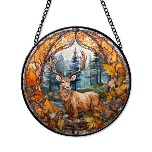 Fall Deer Round Stained Glass Ornament | FALL24RSG19