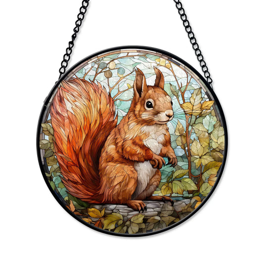 Fall Squirrel Round Stained Glass Ornament | FALL24RSG18