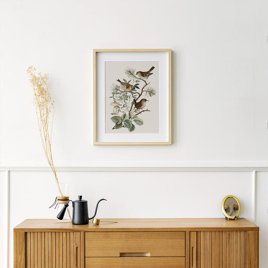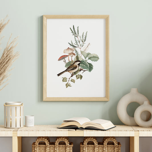 Oiseaux Champignons Botanique vintage Art Print - TÉLÉCHARGEMENT NUMÉRIQUE - WOODLAND
