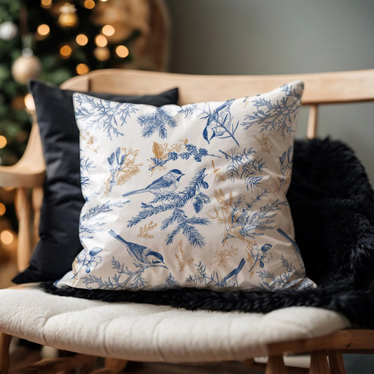 COUSSIN ET COUVERTURE D'HIVER D'Oiseau Bleu Botanique Vintage