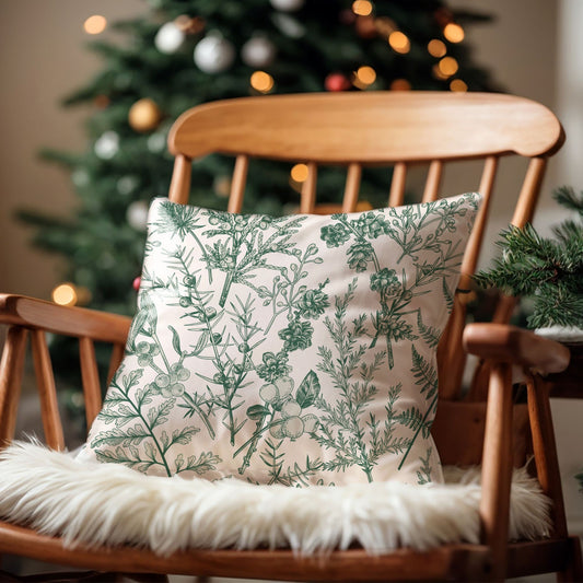 Oreiller et housse de Noël botanique aux baies d'hiver