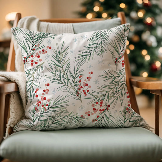 Oreiller et housse de Noël botanique aux baies d'hiver