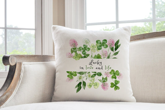 Chanceux dans l’amour et la vie Shamrock OREILLER ET COUVERTURE| PRINTEMPS ST. DÉCOR DE LA FÊTE DE PATRICK