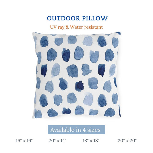 Blue and White Watercolor Dots | OUTDOOR PILLOW
