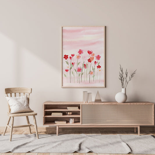 Aquarelle Coeur et Fleurs Art Print - Téléchargement numérique