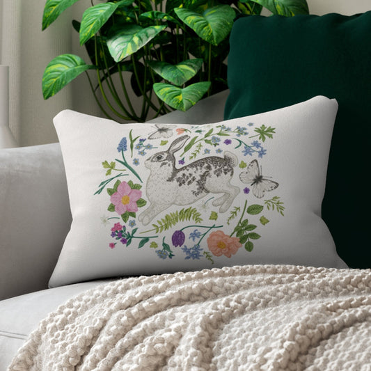Aquarelle Lapin et Fleurs OREILLER & COUVERTURE | DÉCOR PRINTEMPS PÂQUES