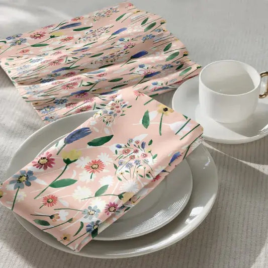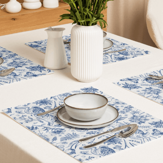 Ensemble de SERVIETTES en tissu floral à feuilles bleues
