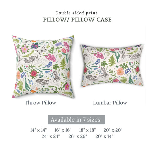 Aquarelle Lapin et Fleurs OREILLER & COUVERTURE | DÉCOR PRINTEMPS PÂQUES