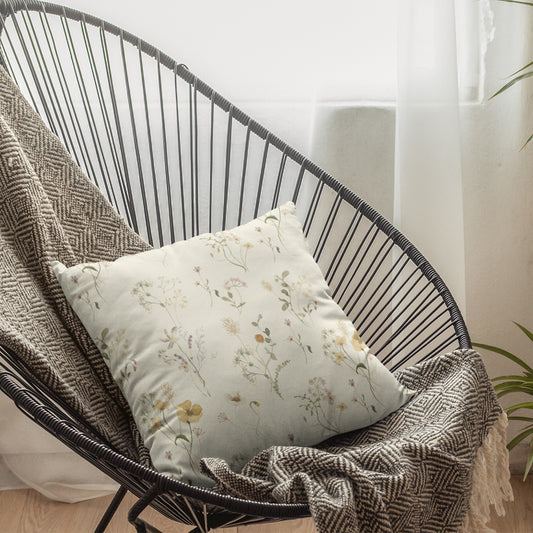 Aquarelle Fleurs pressées et sauvages OREILLER & COUVERTURE | DÉCO PRINTEMPS ÉTÉ