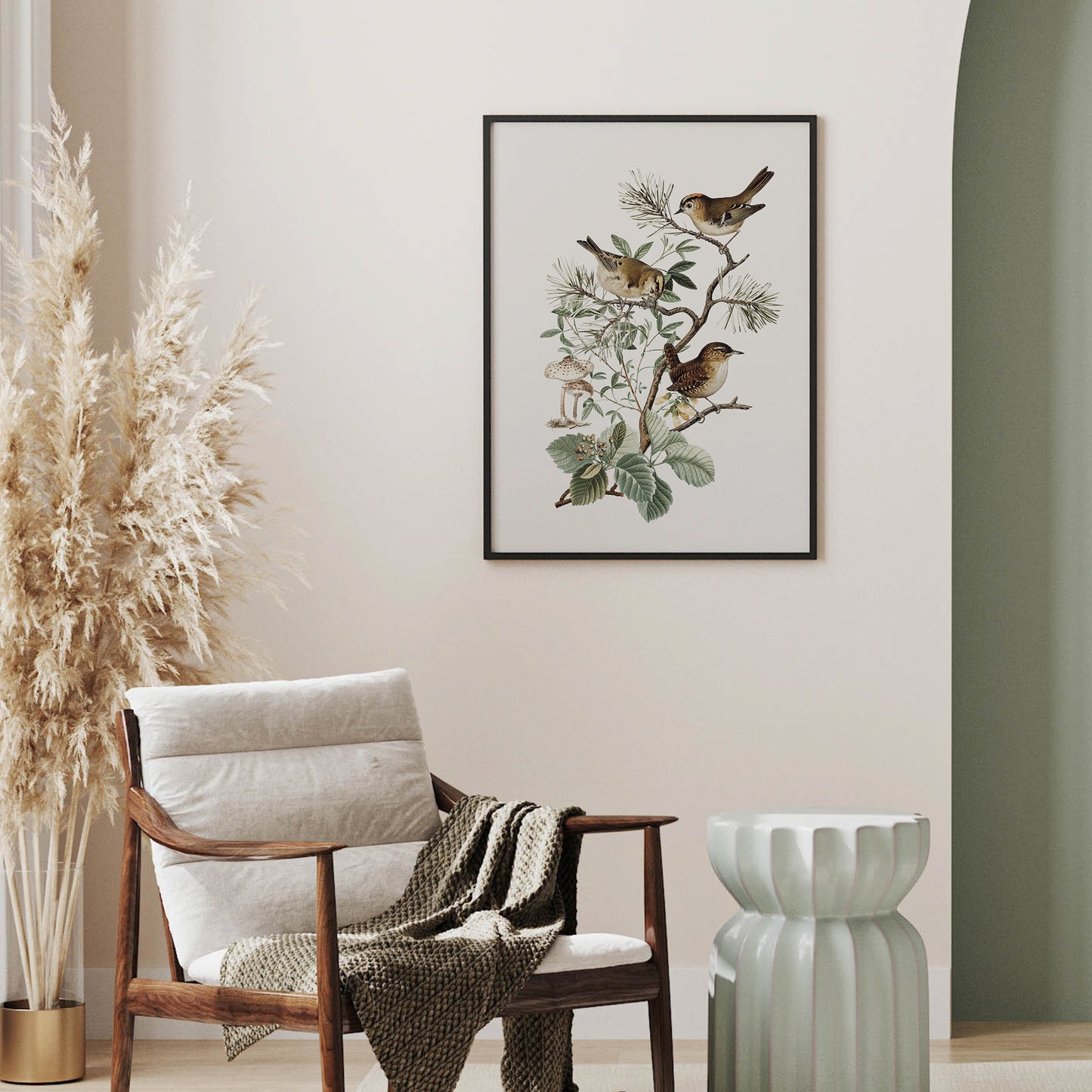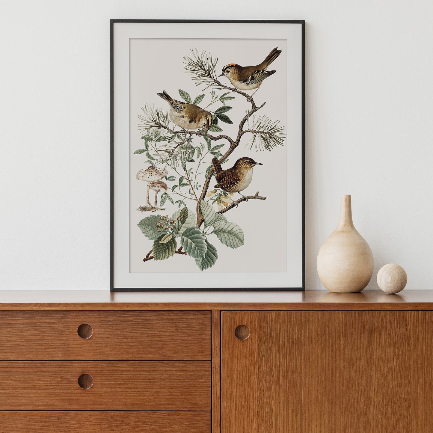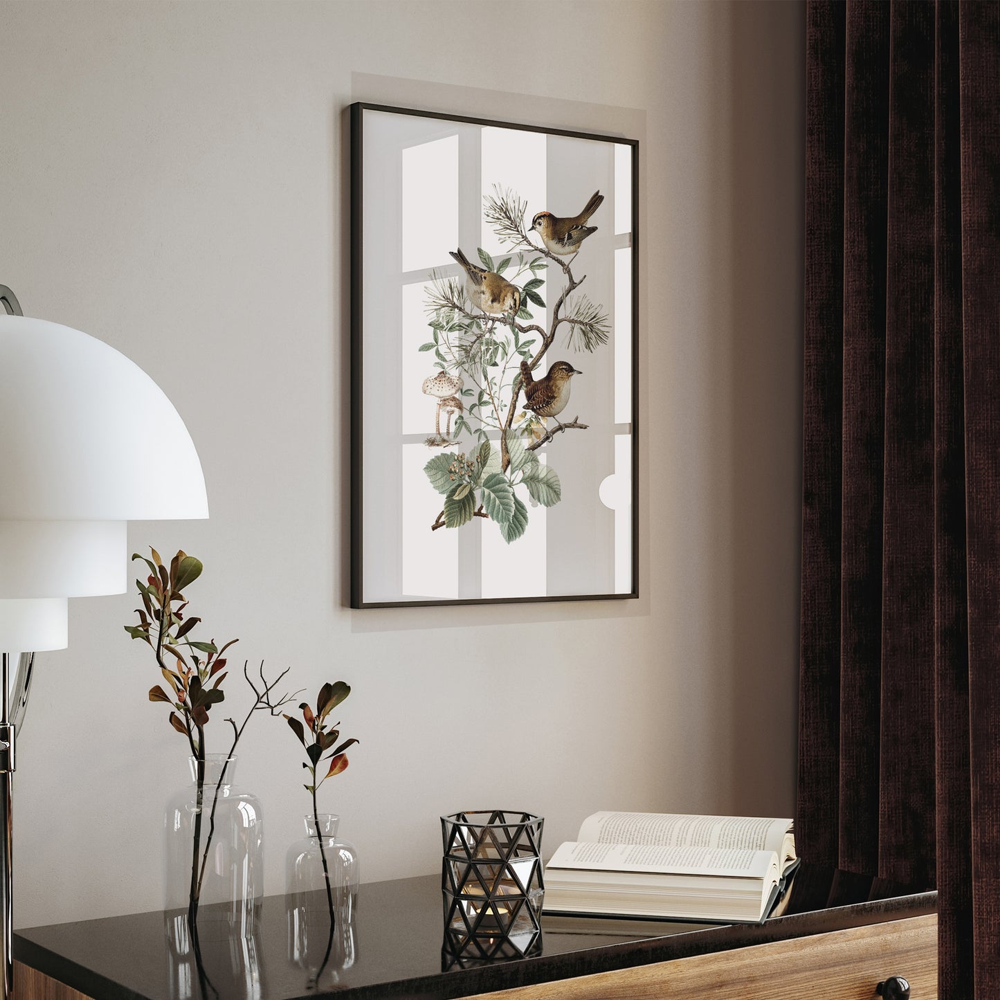 Oiseaux Champignons Botanique vintage Art Print - TÉLÉCHARGEMENT NUMÉRIQUE - WOODLAND