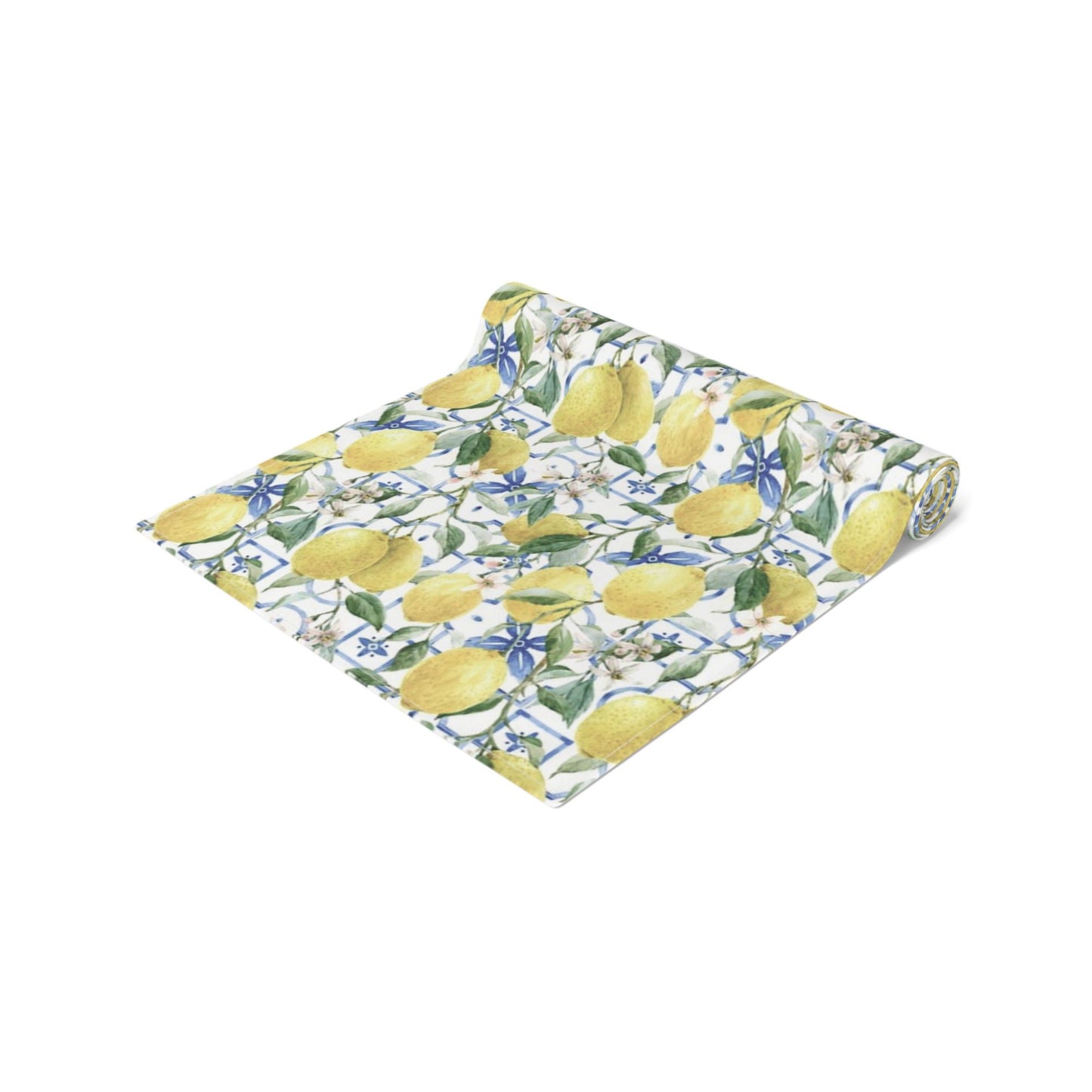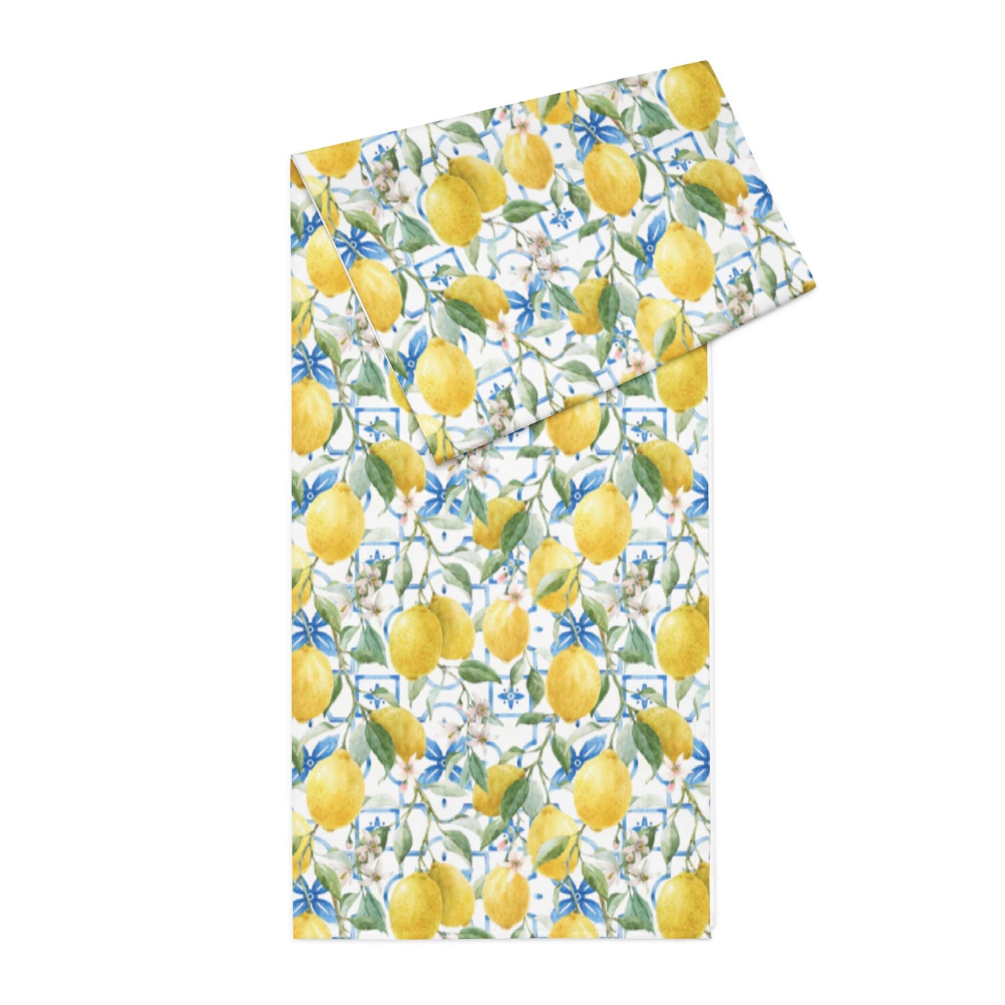 Ajoutez une touche d'élégance estivale à votre expérience culinaire avec notre chemin de table Summer Lemon de Blue Water Songs. Doté de motifs de citron vibrants d'inspiration botanique, ce chemin de table est parfait pour rehausser votre ensemble de salle à manger, vos fêtes ou votre décoration de mariage.