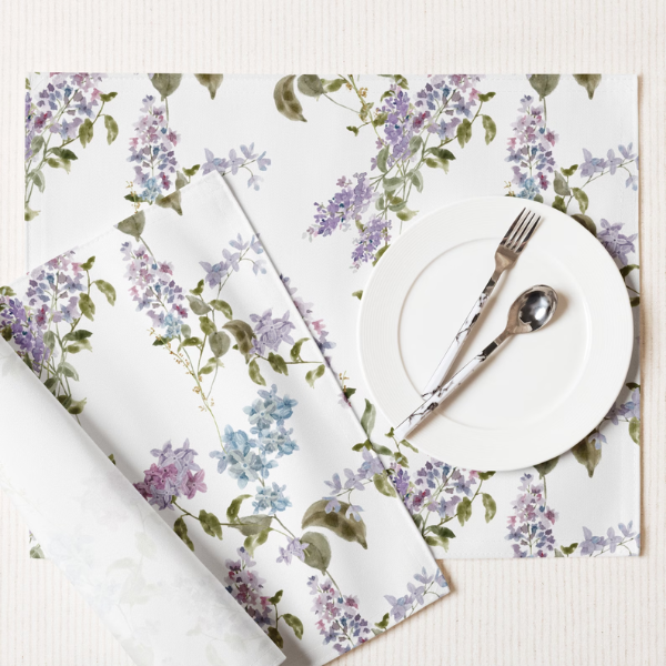 Améliorez votre table à manger avec l'ensemble de napperons aquarelle fleur lilas de Blue Water Songs.