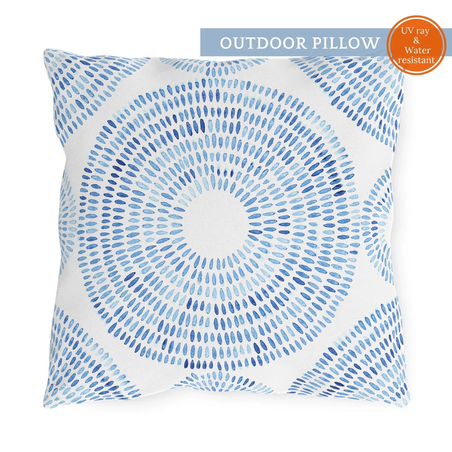 Blue Watercolor Hand-Painted Pattern| OUTDOOR PILLOW