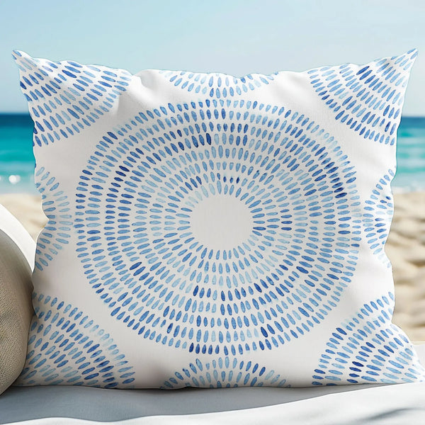 Elevate your outdoor decor with our Blue Watercolor Hand-Painted Pattern Outdoor Pillow. Featuring a unique, hand-painted design in calming blue tones, this pillow brings artistic charm and timeless style to patios, garden benches, and cozy corners. Crafted from 100% spun polyester, it’s UV ray and water-resistant, ensuring colors stay bright season after season. The mildew-resistant fabric keeps it looking fresh, while the sewn seam closure adds a polished finish. Available in multiple sizes to suit your outdoor space.