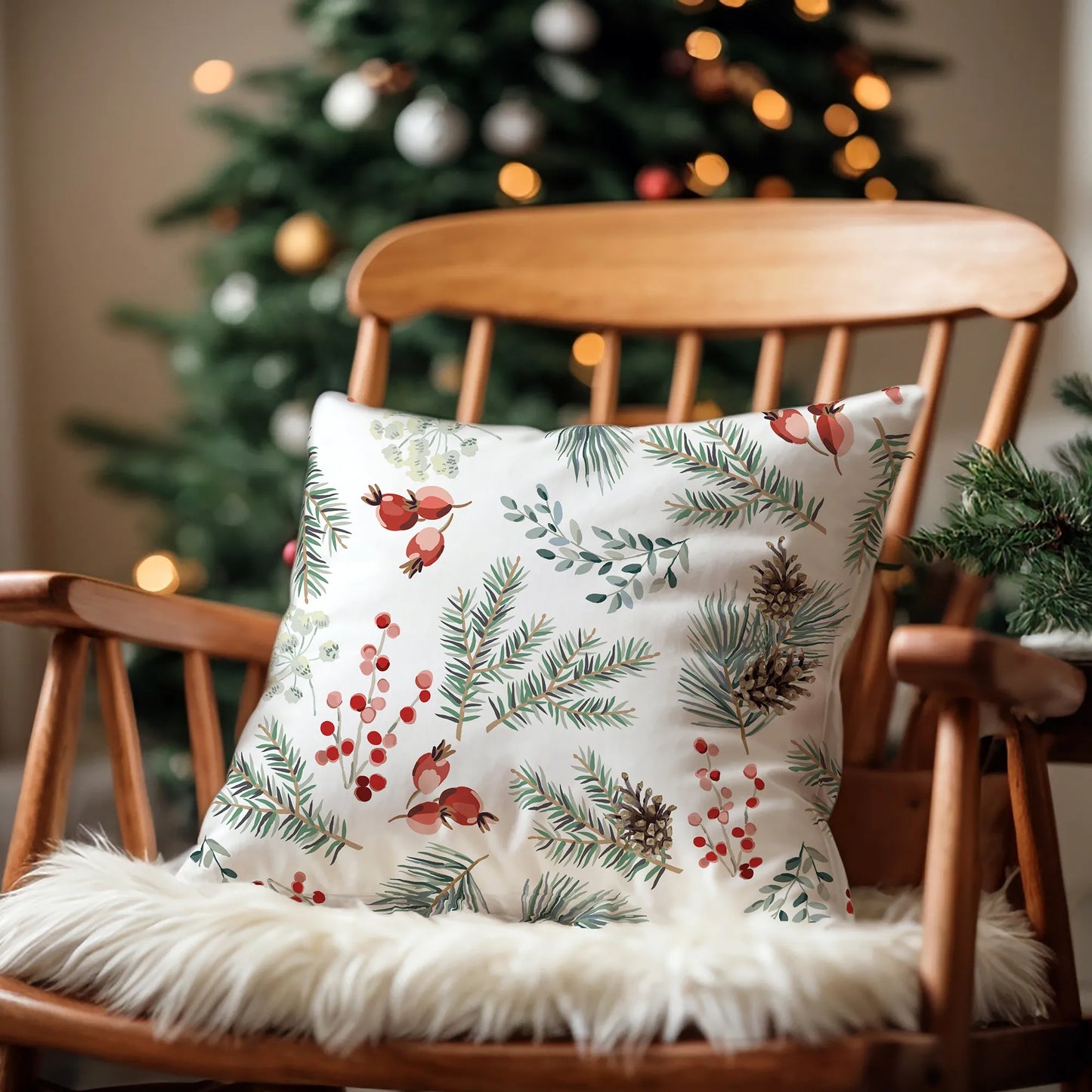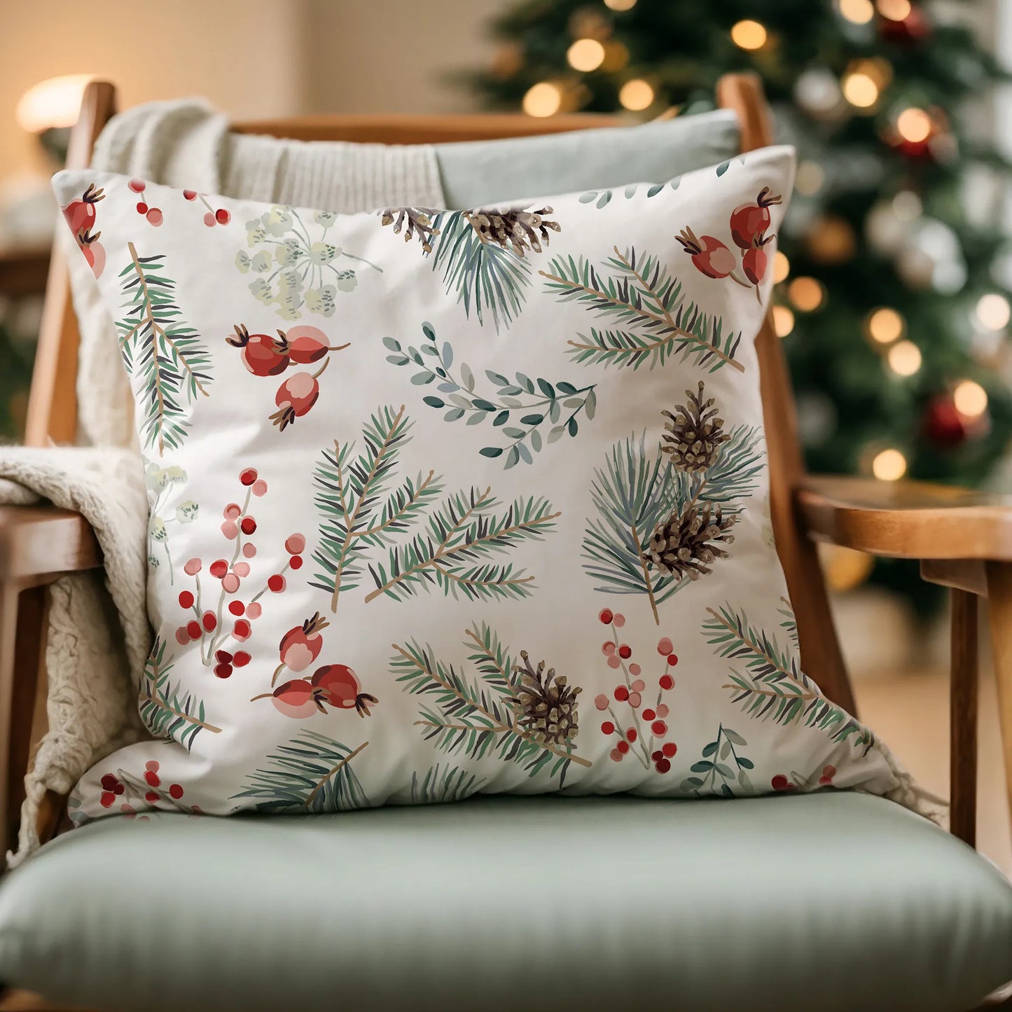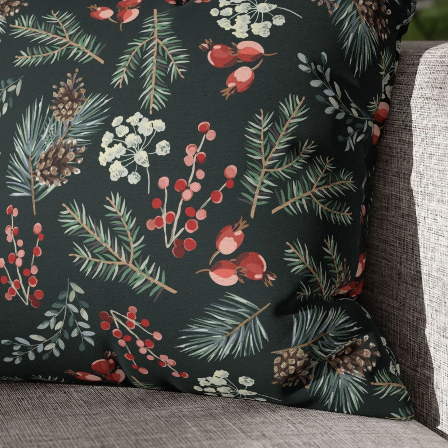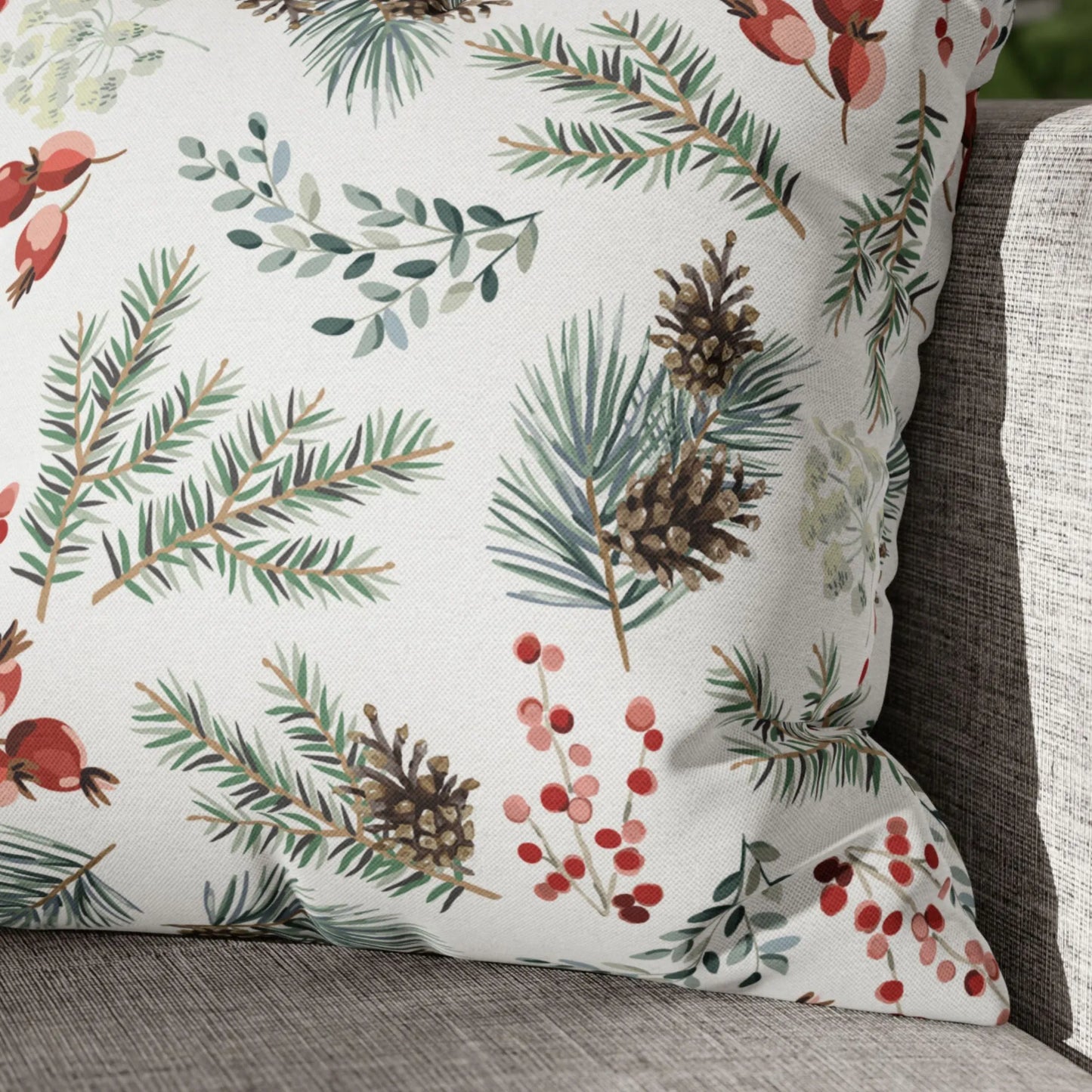 Imagine curling up on a chilly afternoon with a warm drink, surrounded by the soft beauty of winter berries and delicate botanicals. This pillow is your invitation to embrace the season — from the sparkle of the holidays to the quiet elegance of early spring.