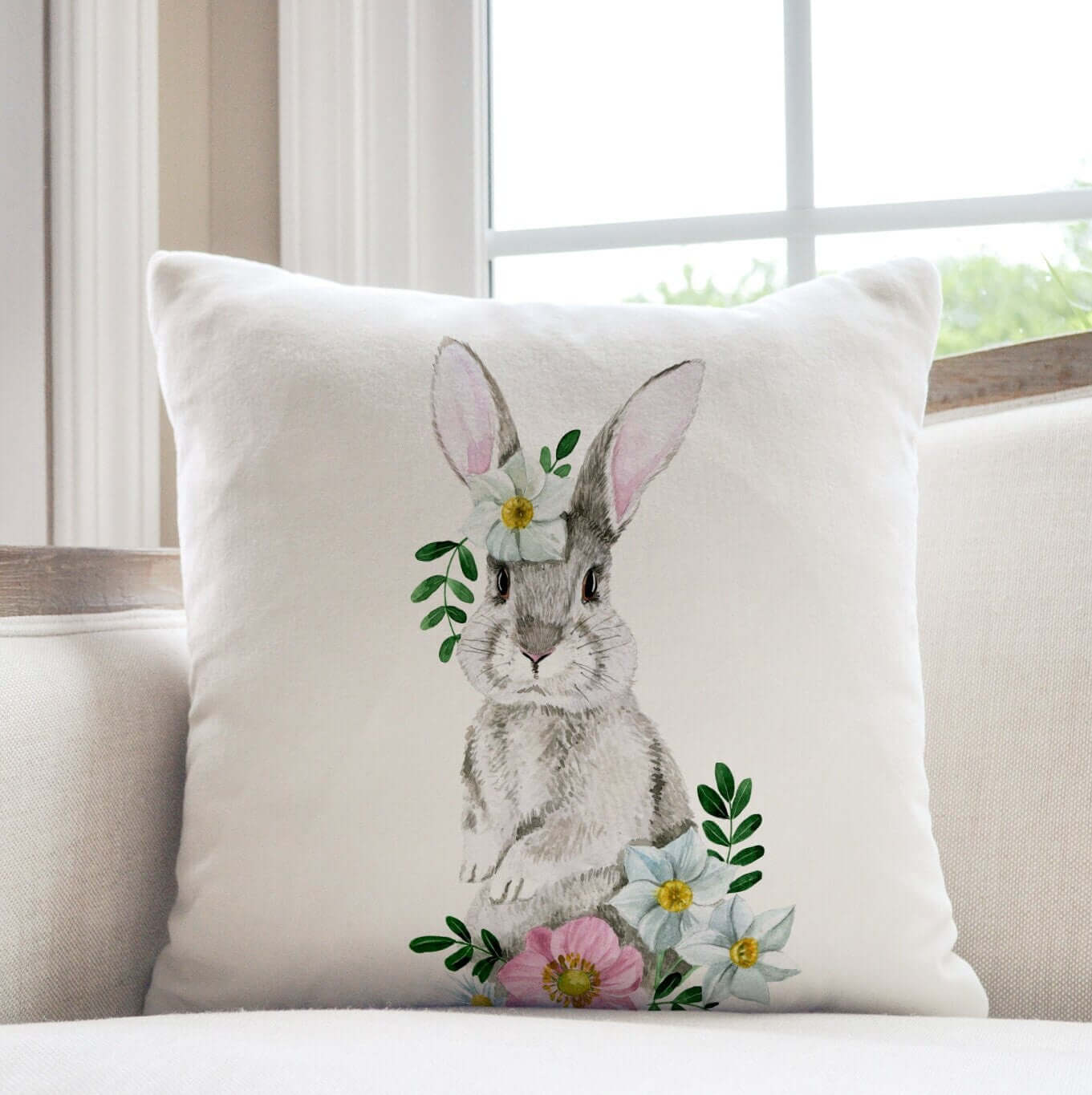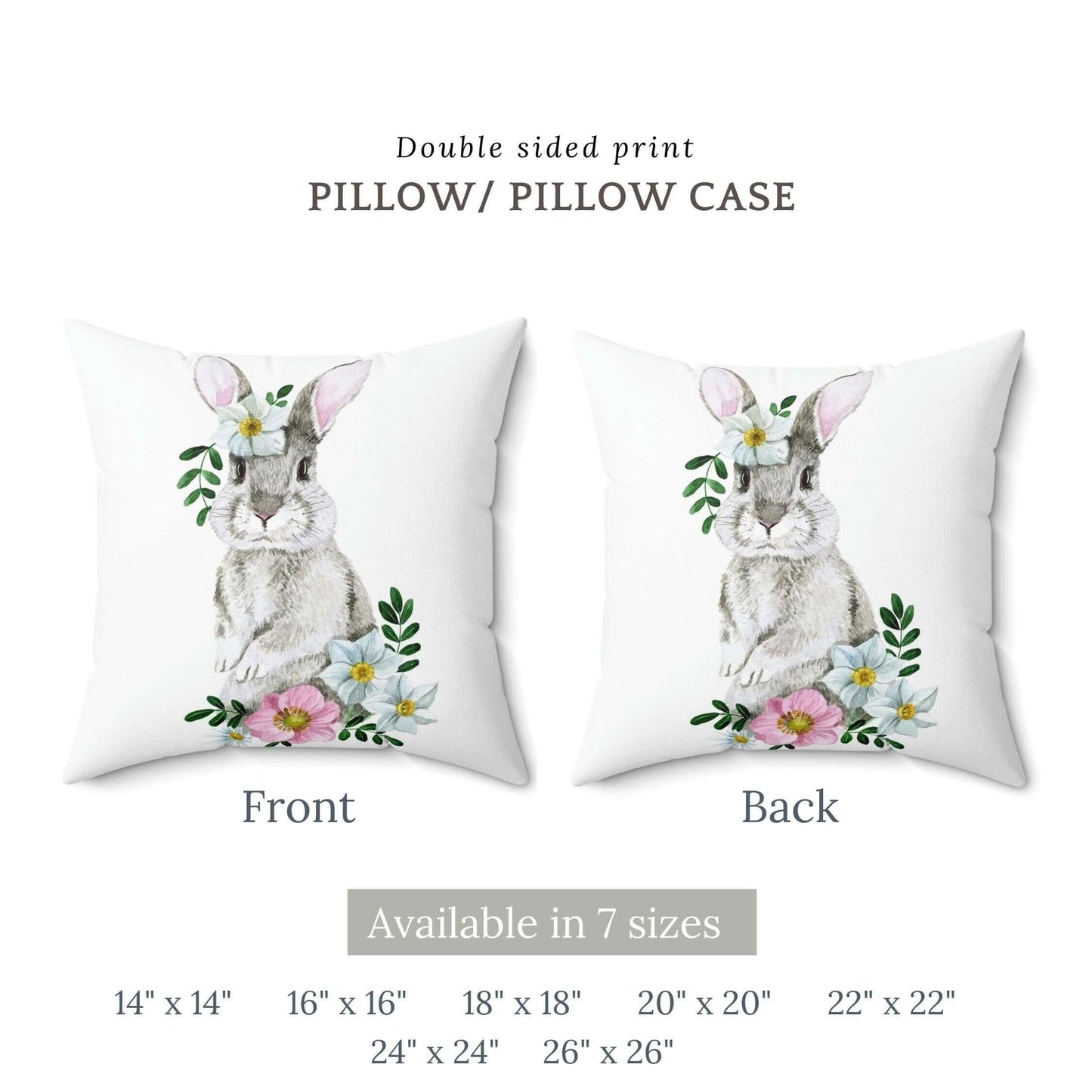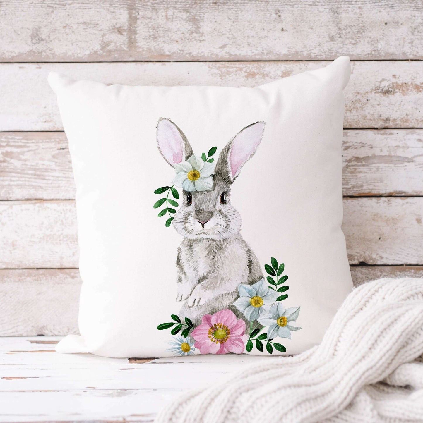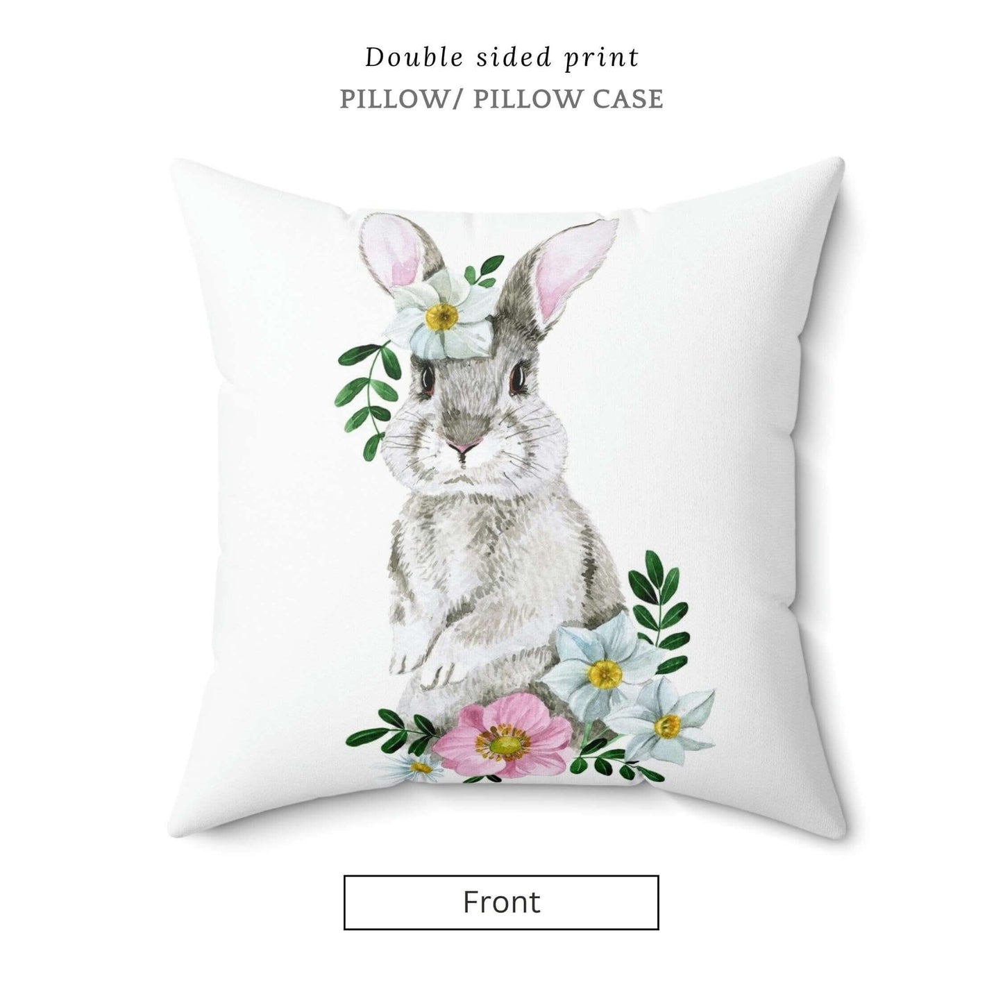 Watercolor Bunny and Flowers PILLOW & COVER | SPRING EASTER DECOR